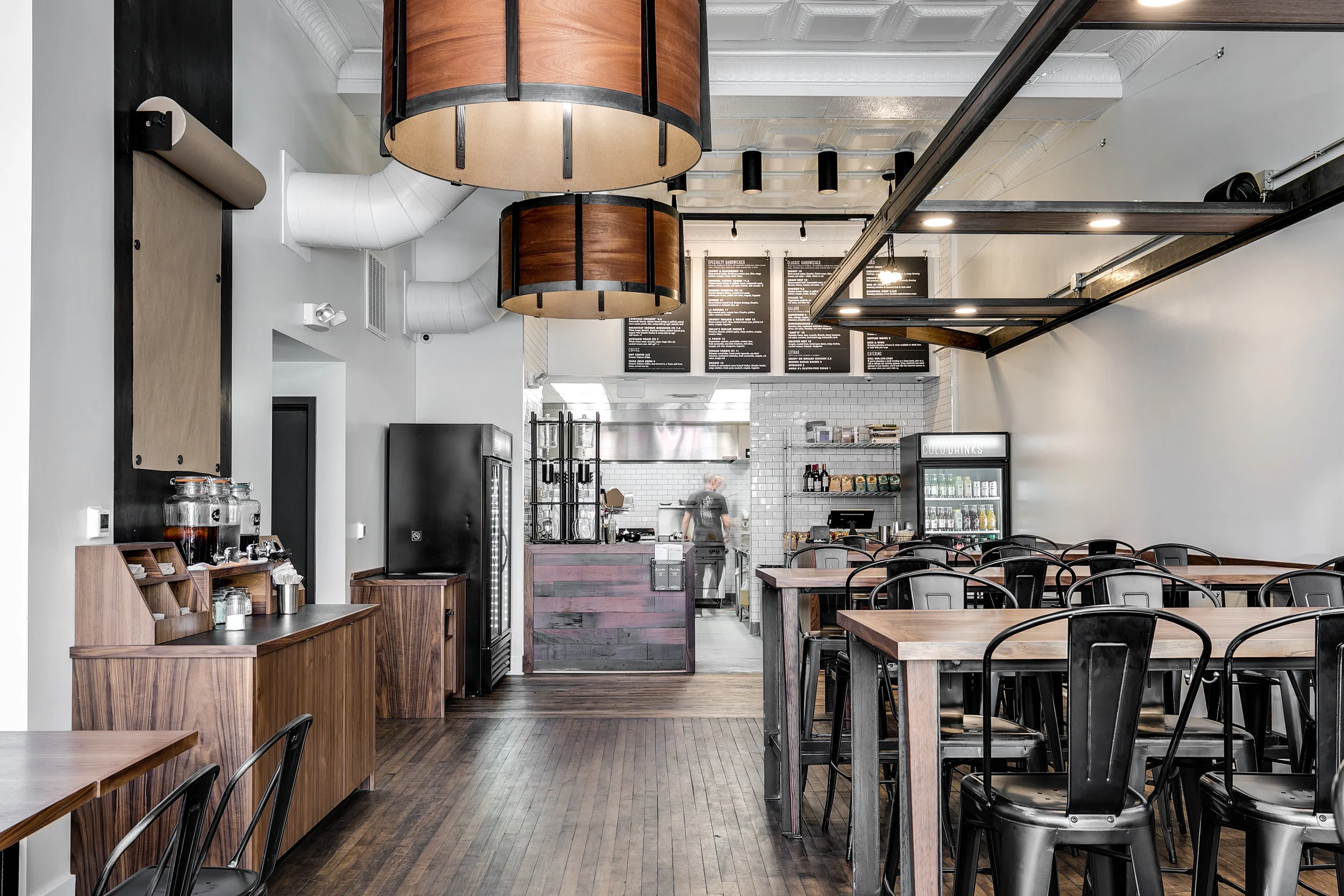 Our team transformed both the interior and exterior to maximize the space for both guests and staff. Outside, a fresh coat of paint was applied to the entire building, and the storefront was updated with a new entry system and new lighting. Inside, we demolished the existing layout to install a full back-of-house build-out with new kitchen equipment, a walk-in cooler, and upgraded systems. The dining area received a full aesthetic transformation with new flooring, custom-built cabinetry, and modern light fixtures. The result is a refined and efficient space that elevates the dining experience and reflects the restaurant's quality of care.